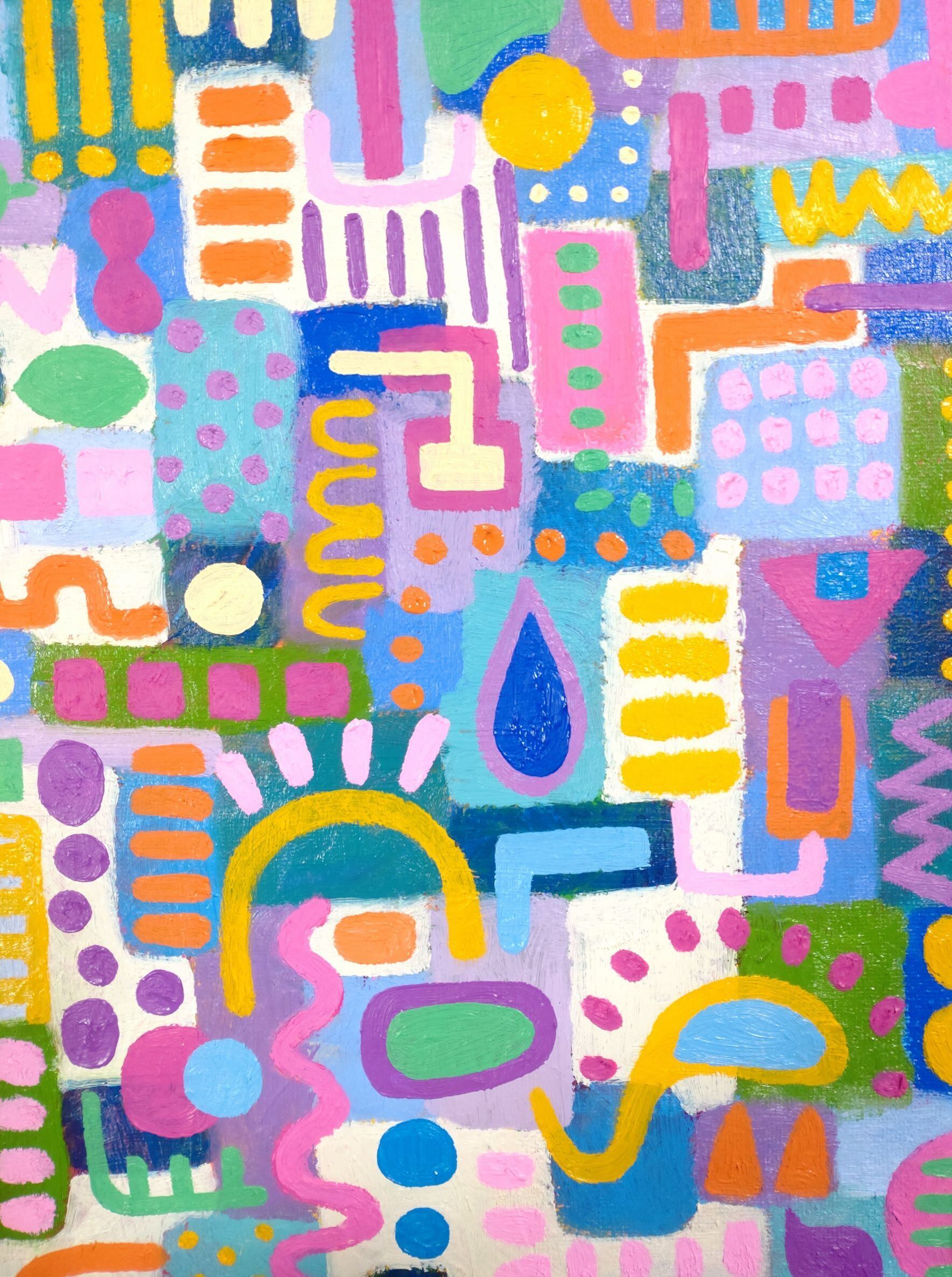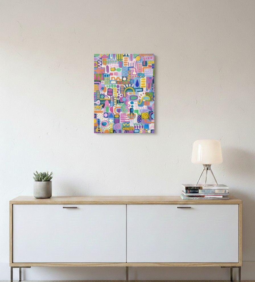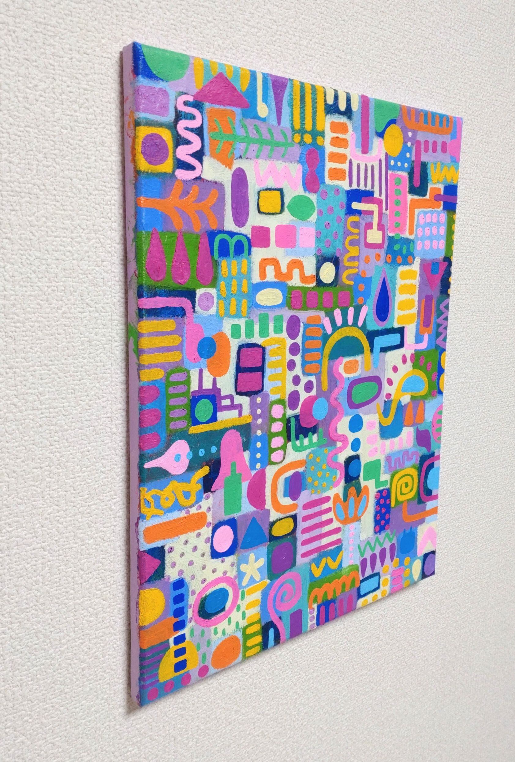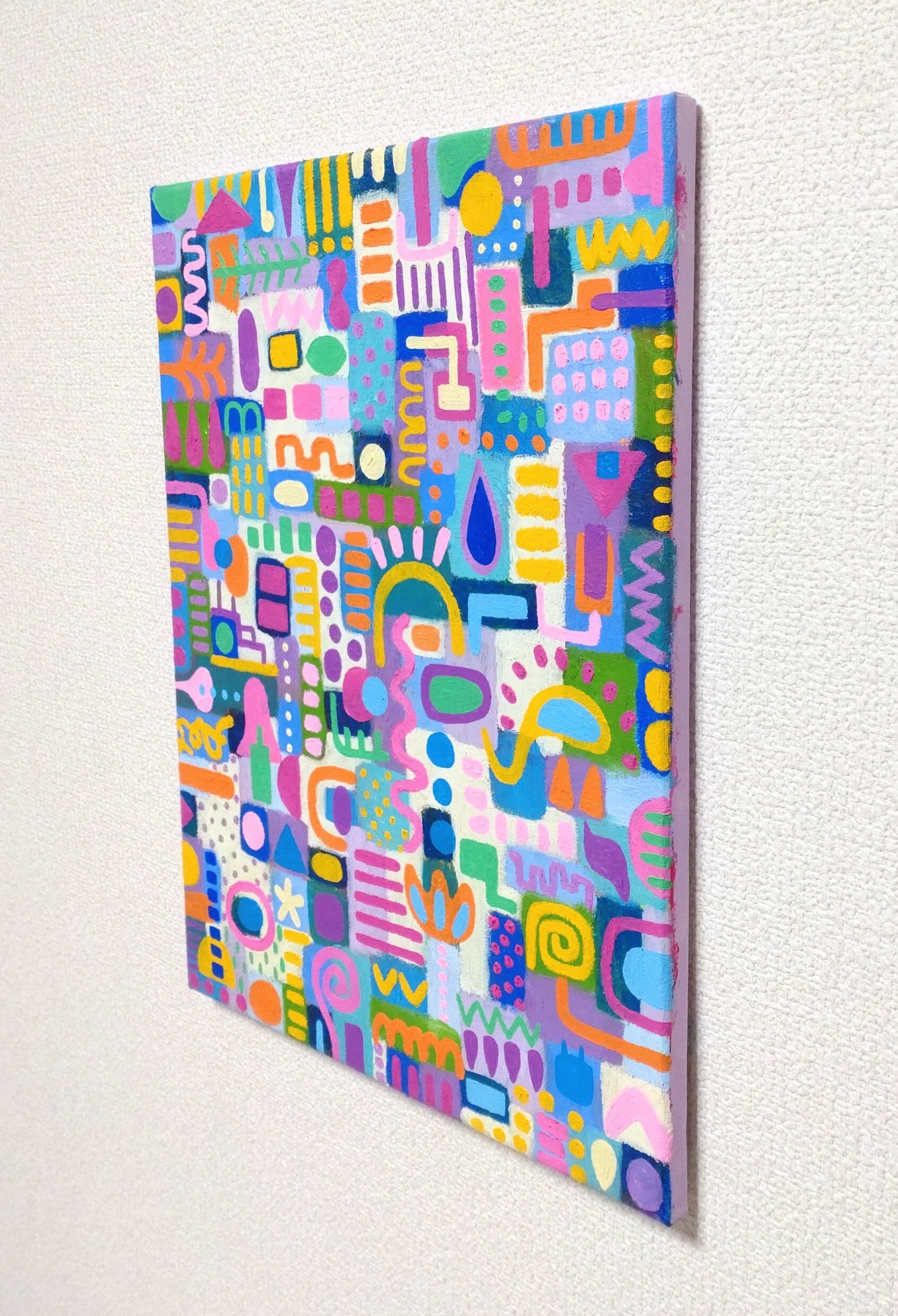 カラフルな抽象画をお探しの方、お部屋のアクセントになる作品をお探しの方、毎日楽しくいきたいという方におススメです。
