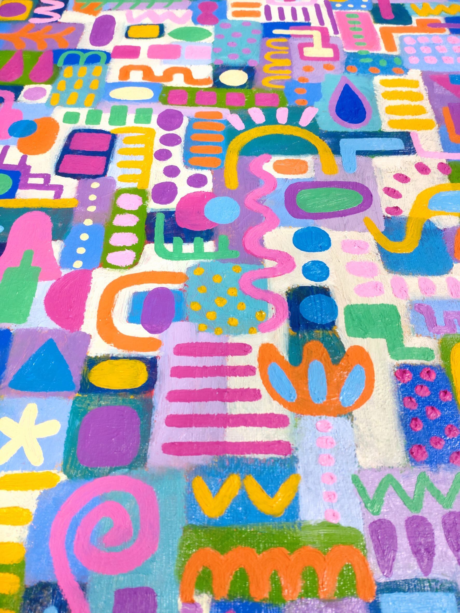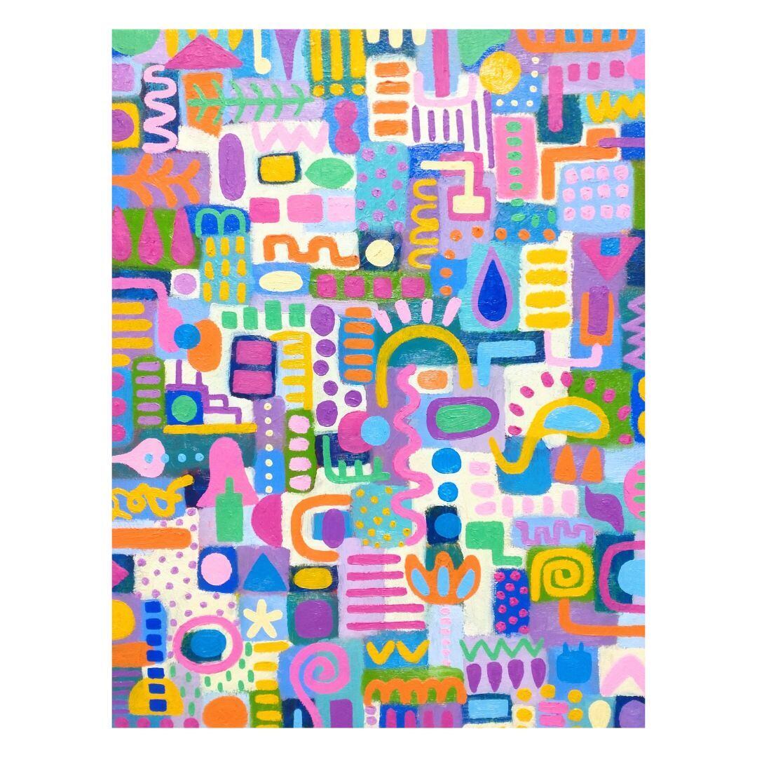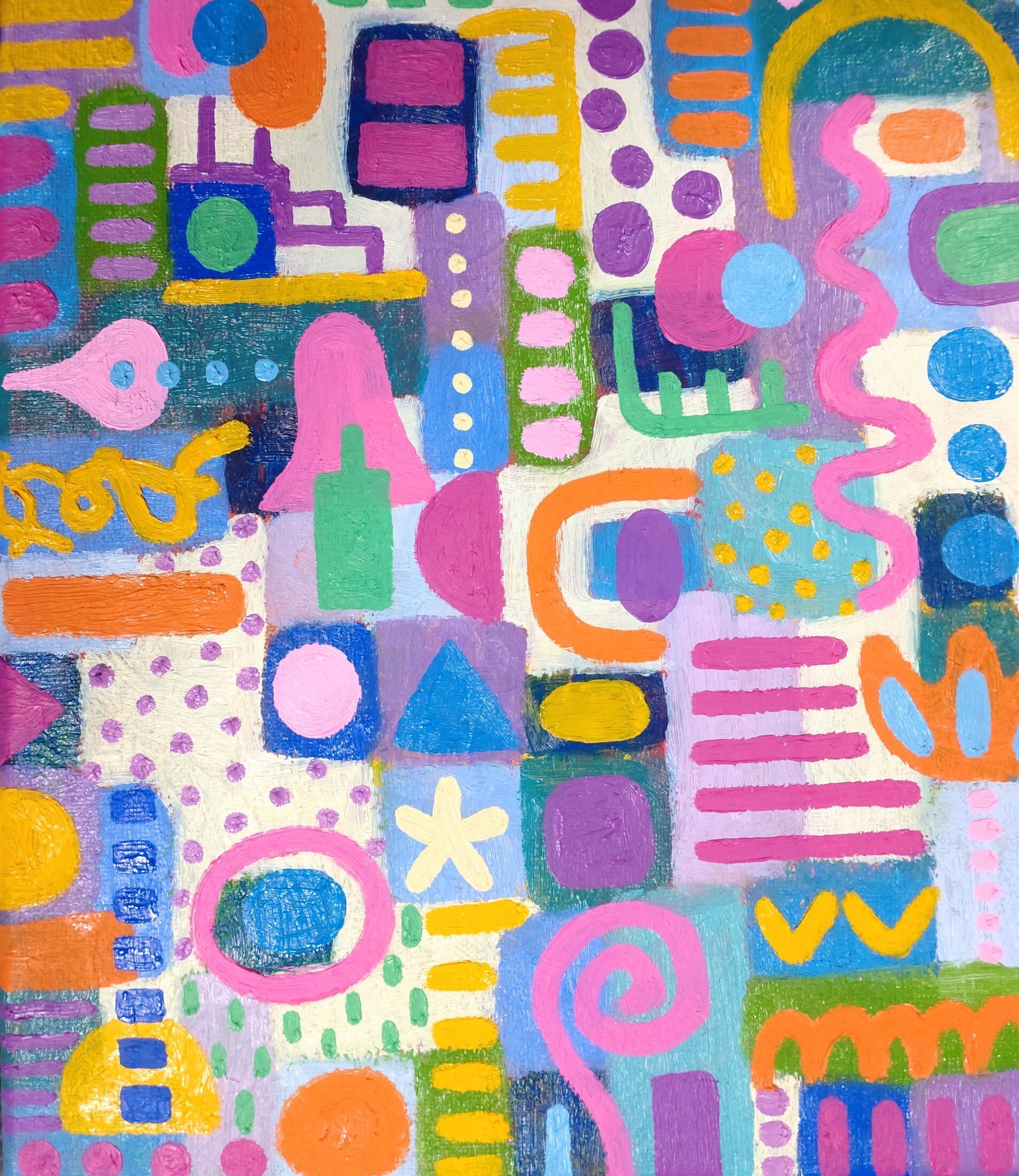 カラフルな抽象画をお探しの方、お部屋のアクセントになる作品をお探しの方、毎日楽しくいきたいという方におススメです。