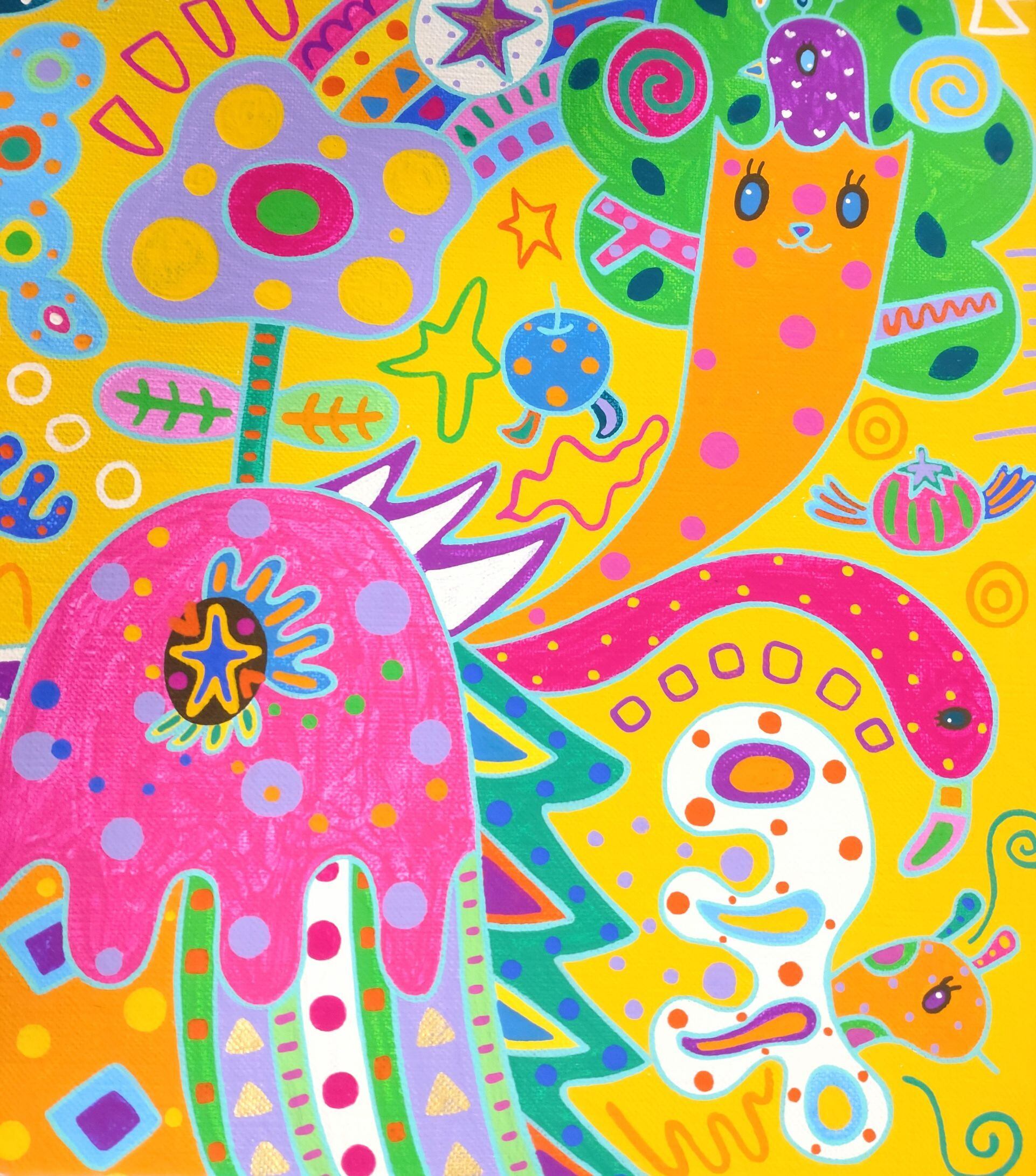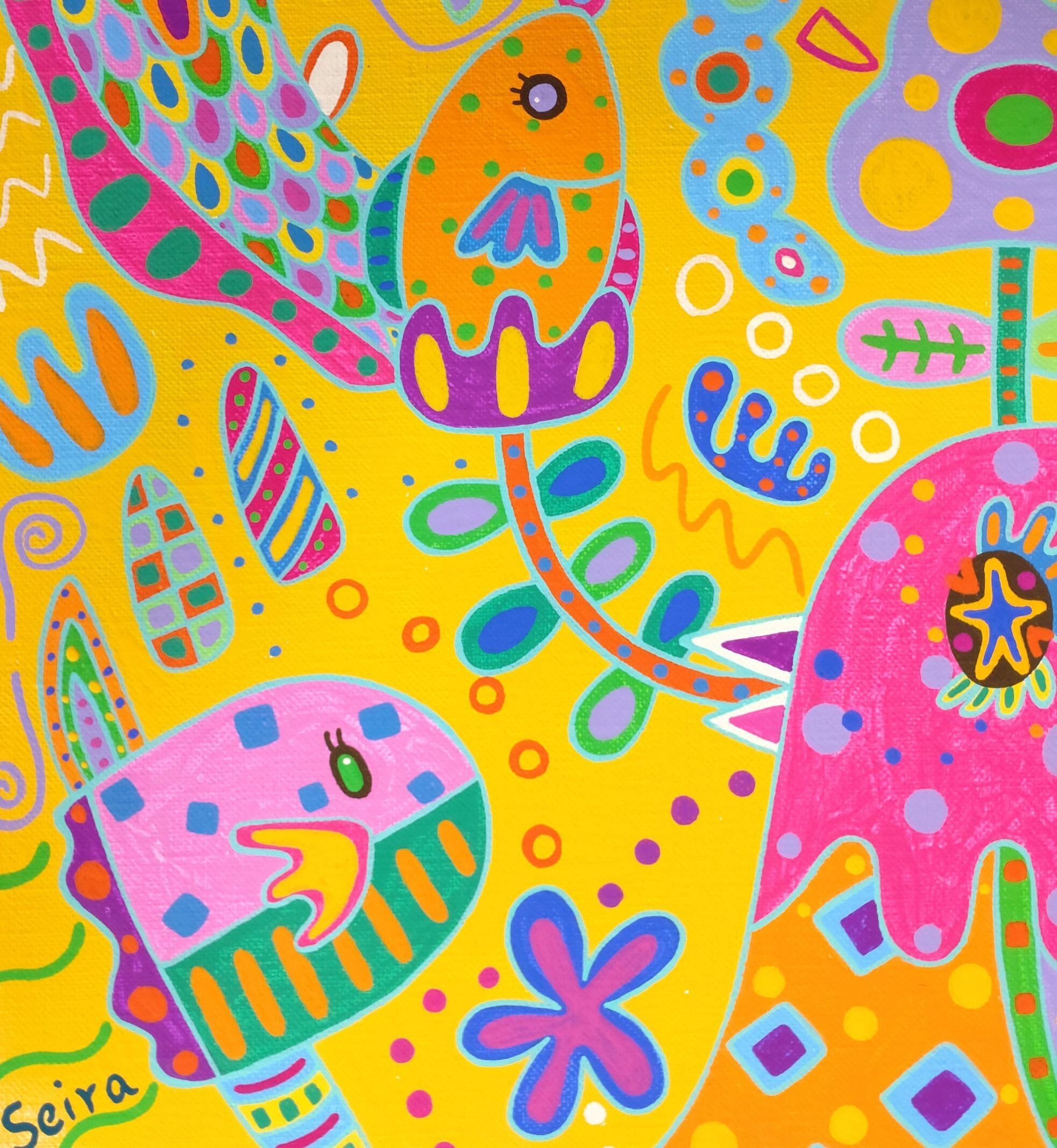 明るい作品をお探しの方、生き物がお好きな方、子供部屋に飾る作品をお探しの方、玄関に飾る作品をお探しの方におススメです。
