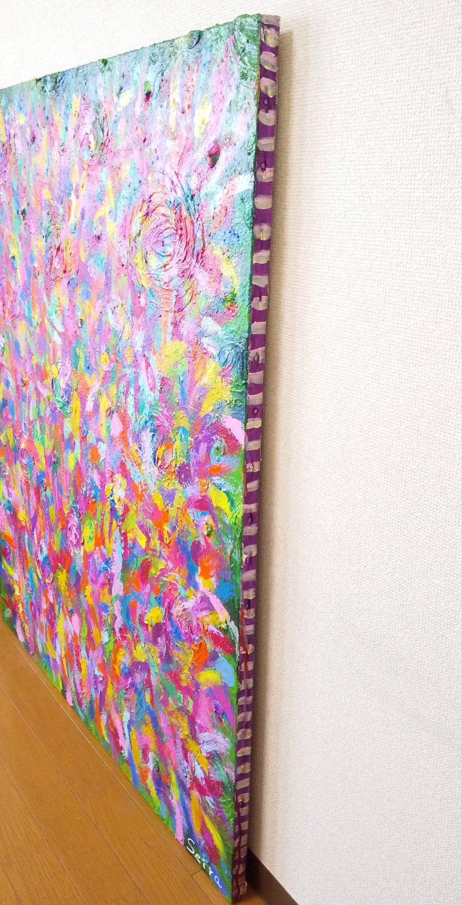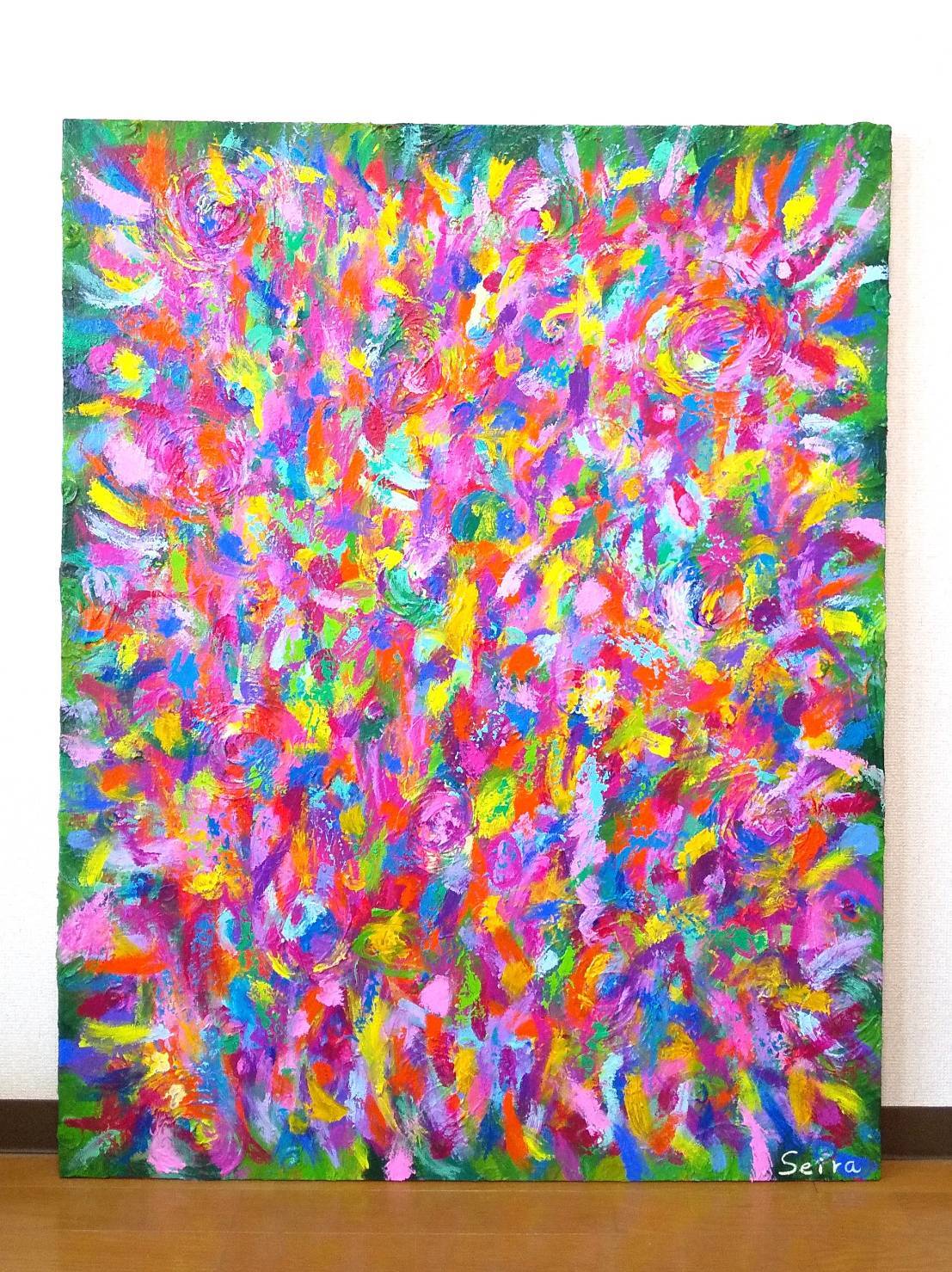 大きいサイズの抽象画をお探しの方、カラフル&パワフルな作品をお探しの方、お部屋が明るくなる作品をお探しの方におススメです。