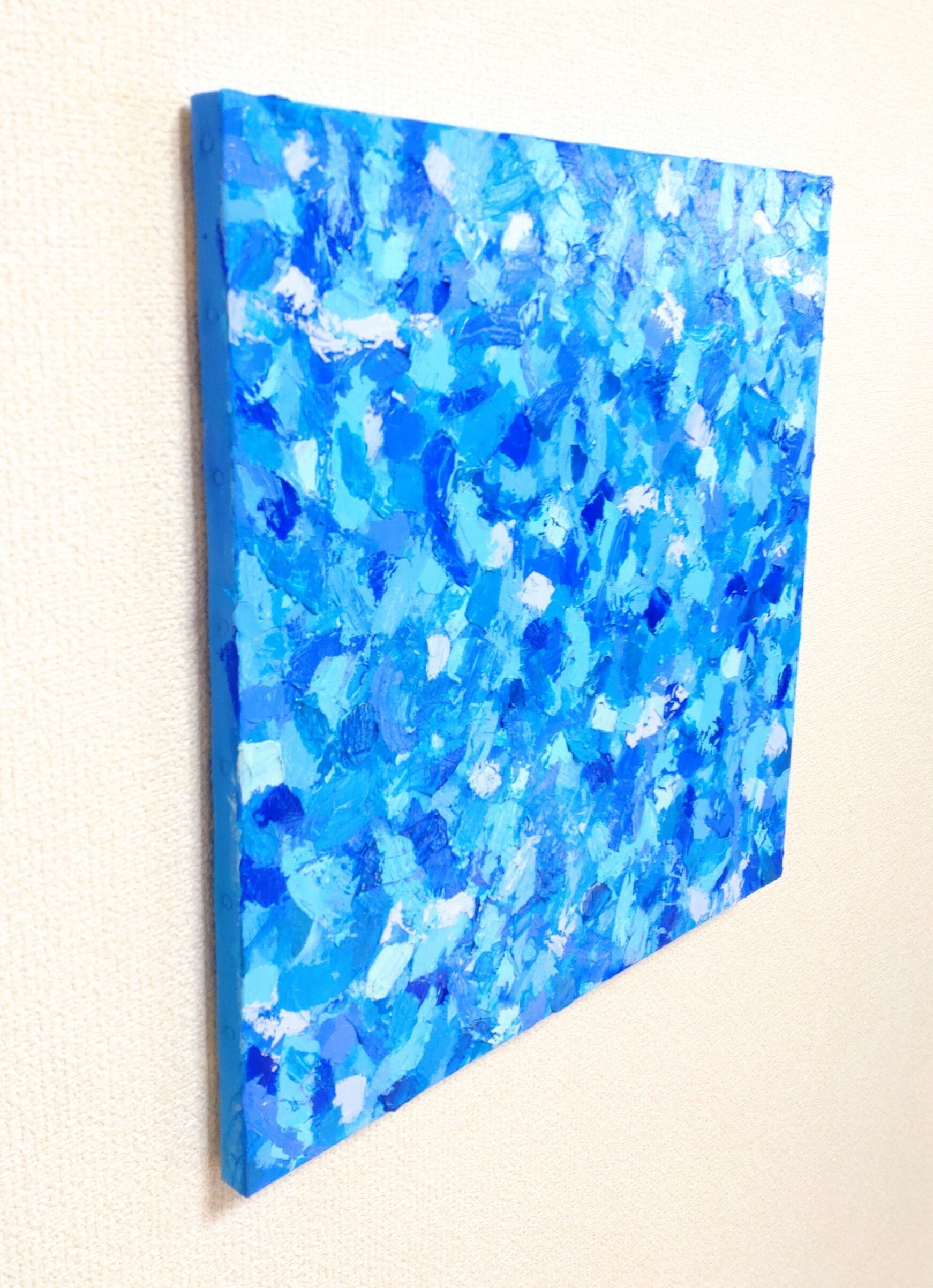 青色がお好きな方、青の抽象画をお探しの方、お部屋のアクセントになる作品をお探しの方におススメです。